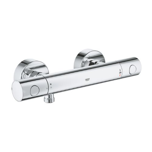 Consisting of: Grohtherm 500 thermostatic shower mixer 1/2" (34 793) Tempesta 100 shower rail set 1 spray 620 mm (27 853) GROHE EcoJoy technology reduces water and energy consumption GROHE DreamSpray technology ensures an even flow of water for the relaxing Rain Spray, and the nozzles brush easily free of limescale thanks to the SpeedClean feature Durable and easy care GROHE StarLight chrome finish Manufacturer Stock Code: 34796000 EAN Code: 4005176632464 Sub-Category: Mixer Showers Colour: Chrome Brand: Grohe Category: Showers Room: Bathroom Type: Exposed