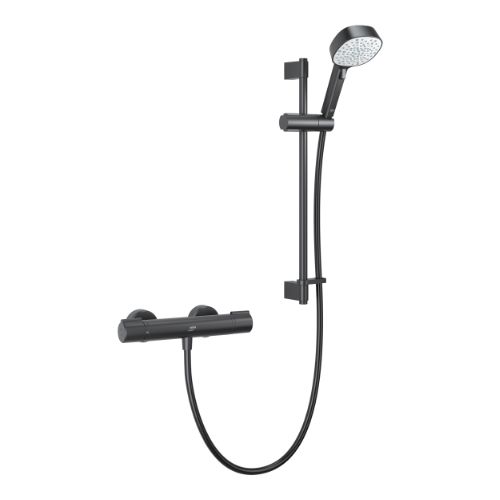 Features an enhanced 100mm hand shower with easy-clean nozzles for consistent performance. Switch effortlessly between four luxurious spray experiences with the push-button handset Create your ideal shower with separate temperature and flow controls - intuitive enough for the whole family Enjoy safer showering with precise thermostatic control, maximum temperature stop and innovative Mira Cool Shield technology to prevent touchpoints getting too hot Works with any system, at any pressure. With guaranteed performance thanks to Mira Magni-flo technology Push-button height adjustment for the handset lets you easily find the right position for kids or grown ups Fitting your shower is a breeze, with front-of-tile installation and Mira's fast-fix kit - including a simple pipe-spacer guide. One box has it all, for extra convenience An adjustable slide bar lets you position over previous fittings - you may even be able to use the old fixing points - for the perfect cover up Works on all systems and pressures, even gravity fed From the durable finish to the ceramic flow control ensuring smooth, lifetime operation, this is a mixer shower that's as dependable as it is stylish The unique matt black finish has undergone rigorous testing to guarantee long-lasting performance and style - even with heavy use or hard water Manufacturer Stock Code:1.1836.466 EAN Code:5013181127348 Sub-Category:Mixer Showers Colour:Black Brand:Mira Warranty:5 Years Range:Relate Category:Showers Room:Bathroom Type:Exposed