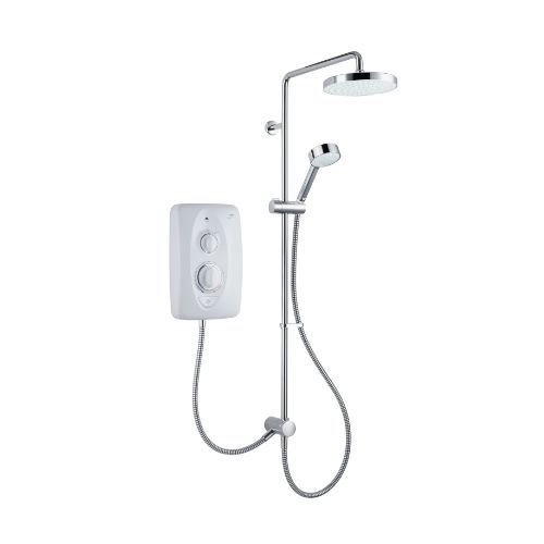 Double the experience - Easily divert between the generous 200mm overhead and the 90mm handset Allows easy replacement - accepts top, bottom and rear water entry from the left or right side, perfect for replacing an existing electric shower. Easy to fit with the ability to position the deluge overhead where it suits in the bathroom, thanks to the adjustable arm Longer lasting - Your electric shower lives longer with up to 50% reduction in limescale thanks to Mira Clearscale technology Eco setting designed to save water and energy Push button on/off so you can leave the power and temperature controls at your preferred setting. Suitable for cold mains water supply Protected with a 2 year warranty In the box - Mira Jump 9.5 Kw, Dual Fittings, Guarantee card, Installation Guide, Installation Template (printed on the inside of product carton and User Guide) Manufacturer Stock Code:1.1788.578 EAN Code:5013181111712 Sub-Category:Electric Showers Colour:White Brand:Mira Range:Jump Category:Showers Room:Bathroom Type:Exposed